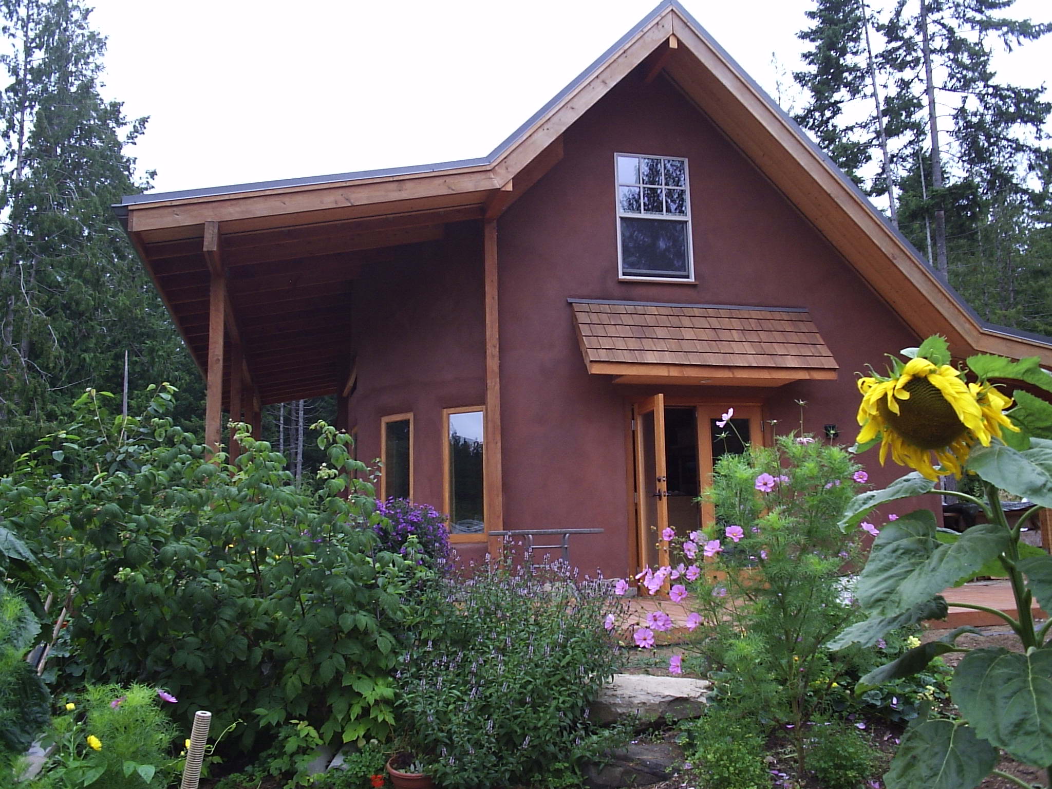 This house is a design-built energy-efficient home that utilizes many natural and locally sourced materials. The project incorporates passive solar design strategies and features a solar hot water system, grey water reuse, suspended earthen floors, living roofs, earthen plasters and two unique super-insulating exterior wall systems.